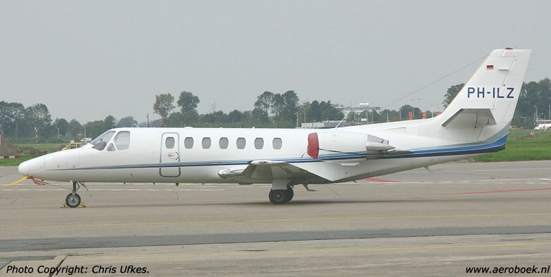 | PH-ILZ, A new Citation for SolidaiR was first seen and photographed at Schiphol on 2 October 2007. A small German flag visible on the tailfin links it to the former D-CFLY from Grenzland Air Service. Previous tail-numbers are: N57ML, N57MK, (N6877L). The Citation was registered to operator SolidaiR, Eindhoven on 6 November 2007. During July 2009 the Citation was offered for sale by SolidaiR for $ 2.800.000,== [ttaf:1339]. When SolidaiR was declared bankrupt on 7 October 2011 the Citation was registered to Fleet Lease BV, Rijssen on 1 June 2012. On 30 November 2012 PH-ILZ was cancelled from the Dutch register and exported to the USA. It was registered to Citation 550 LLC, Wilmington, Delaware with tailnumber N308MM on 7 December 2012. |