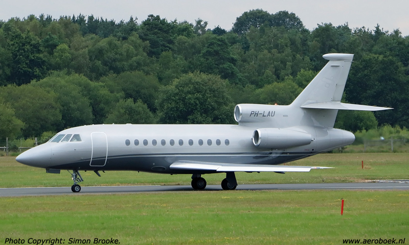 PH-LAU, Exxaero, Showing its new grey livery, applied early 2018, at Farnborough.